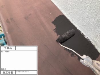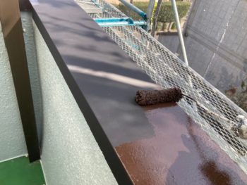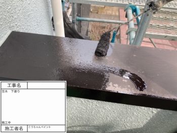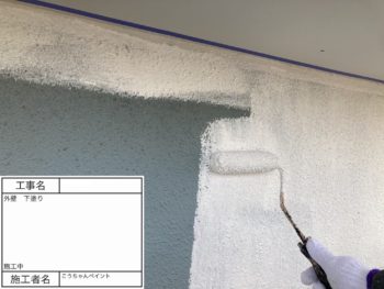 庇 下塗り 施工中