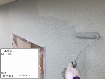 外壁 上塗り 施工中