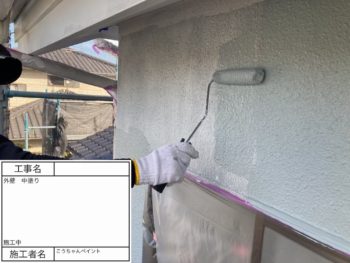 外壁 中塗り 施工中