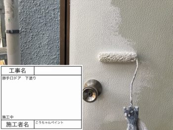 勝手口ドア 下塗り 施工中