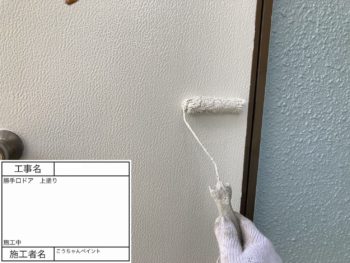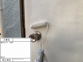 勝手口ドア 上塗り 施工中