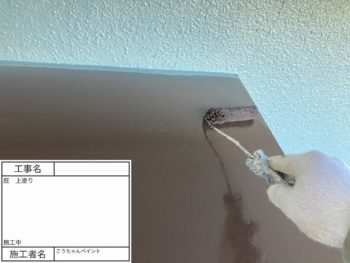 庇 上塗り 施工中
