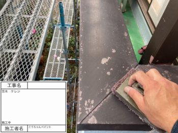 笠木 上塗り 施工中