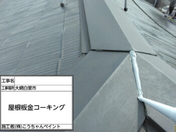 屋根板金コーキング施工中