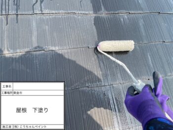 屋根下塗り施工中