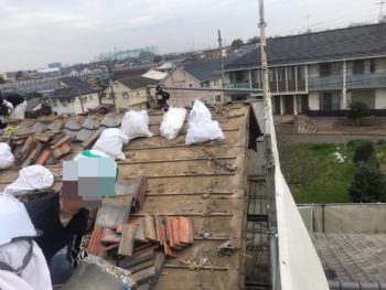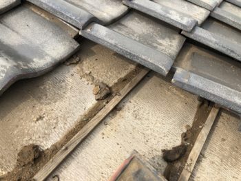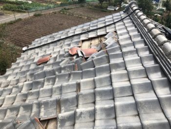 | ご提案内容 | 台風被害により雨漏りがするとの事で部屋の全て点検をさせて頂いた所、瓦が飛ばされていてそれが原因で雨漏りがしていました。築年数も経過しており、屋根の防水シートも傷んでいた為、葺き替えをお勧めしました。また、外壁のテストをしたところ、外壁からも雨漏れしていた為、外壁もサイディング重ね張りをお勧めしました。 全ての補修を経て、もう雨漏りの心配もございません。お住まい全体の安心につながりました! |