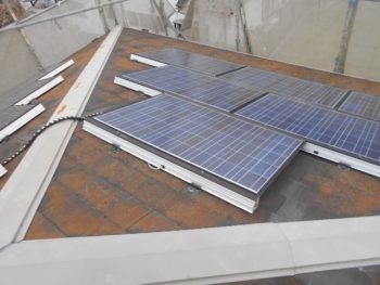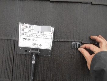 屋根タスペーサー取付け施工中