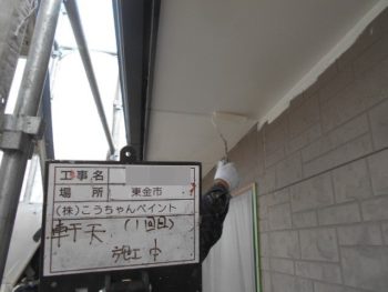 軒天1回目塗装施工中