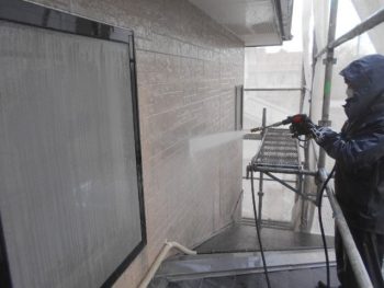 外壁高圧洗浄施工中