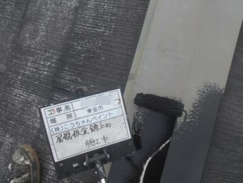 屋根錆止め塗装施工中