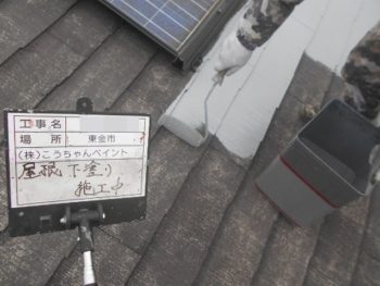 屋根下塗り施工中