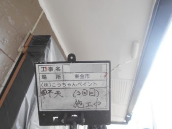 軒天2回目塗装施工中