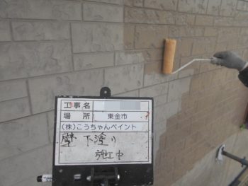 外壁下塗り施工中