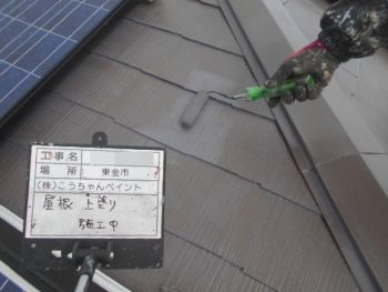 屋根上塗り施工中