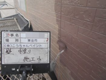 外壁中塗り施工中