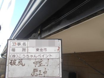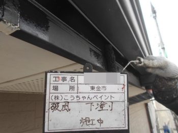 破風下塗り施工中