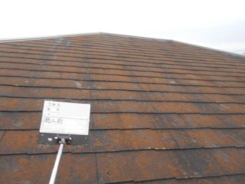 屋根は汚れと傷みが進行した状態です。