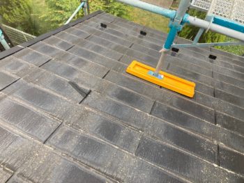 屋根タスペーサー取付け施工中