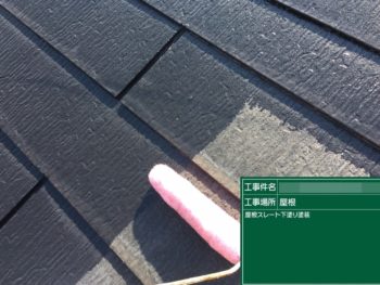 屋根下塗り施工中