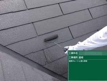 屋根上塗り施工中