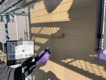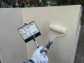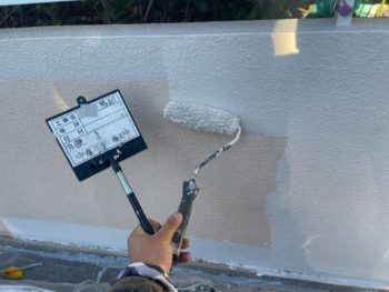 バルコニー壁2回目塗装施工中