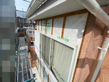 サイディング張り替え施工中