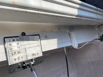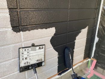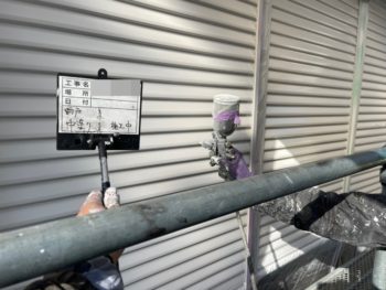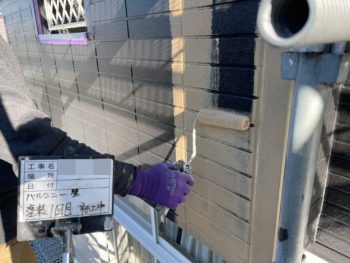外壁中塗り施工中
