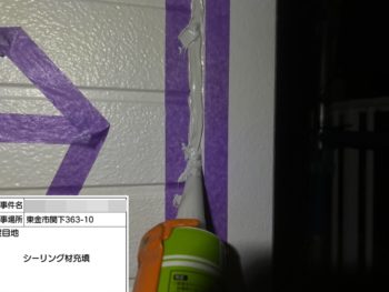 コーキング充填施工中