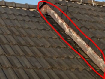 遠くから見ても破風の傷みが目立ちます。