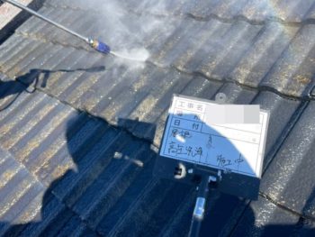 屋根高圧洗浄施工中