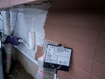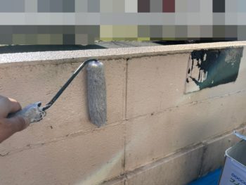 バルコニー壁1回目塗装施工中