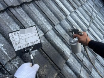 屋根上塗り施工中
