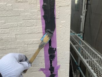 コーキング充填施工中