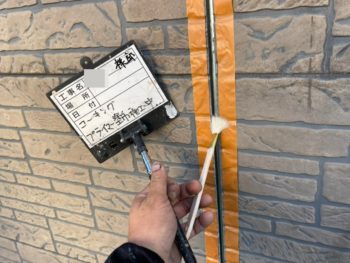 コーキングプライマー施工中