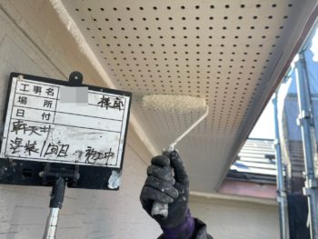 軒天1回目塗装施工中