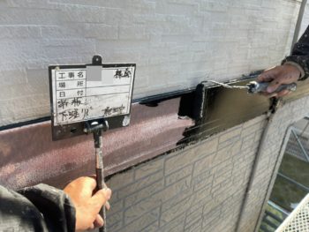 帯板下塗り施工中