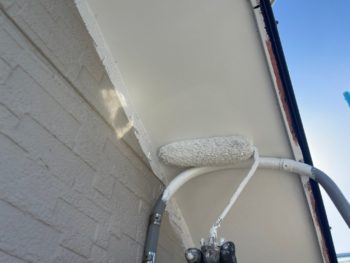 軒天2回目塗装施工中