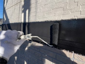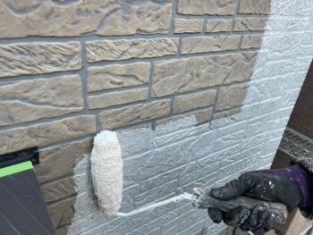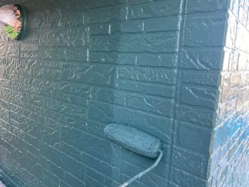 外壁中塗り施工中