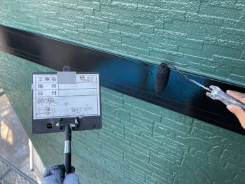 劣化の激しかった帯は、黒で綺麗に塗装され、グリーンの外壁のアクセントになっています!