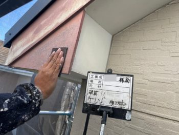 破風下塗り施工中