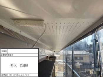 軒天 塗装2回目 施工中