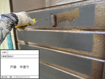 戸袋 上塗り 施工中