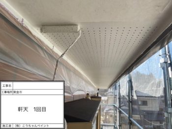 軒天 塗装1回目 施工中