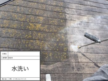 屋根 高圧洗浄 施工中