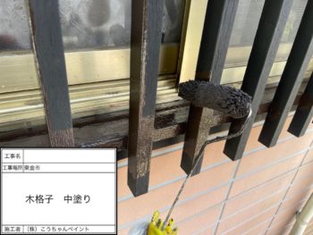 木格子 上塗り 施工完了