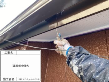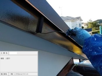 破風板上塗り施工中