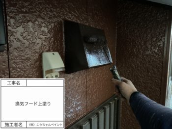 換気フード上塗り施工中