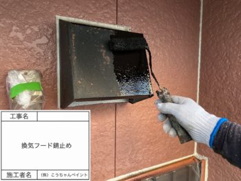 換気フードさび止め施工中
