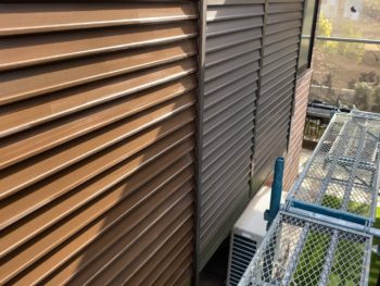 塗装前の車庫側の外壁と雨戸です