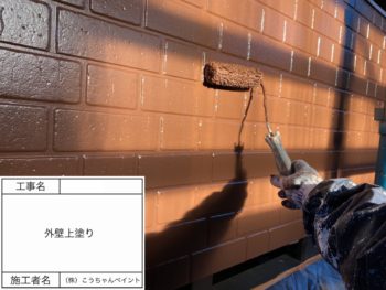 外壁上塗り施工中